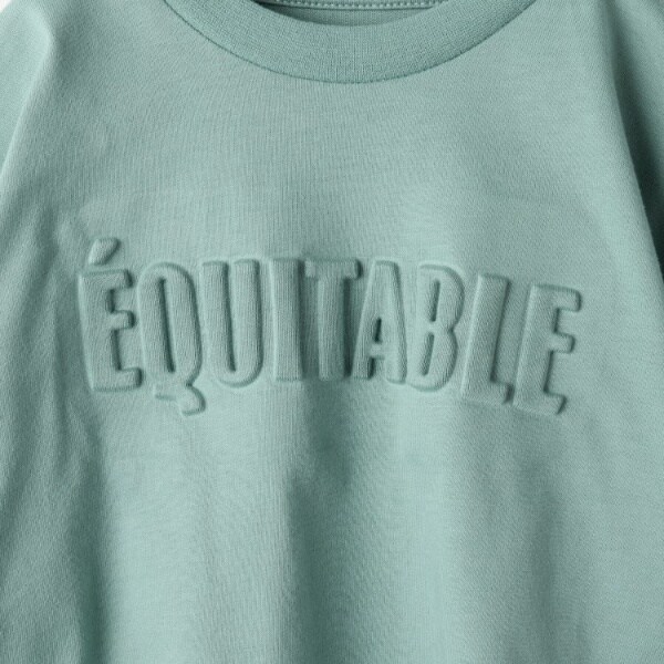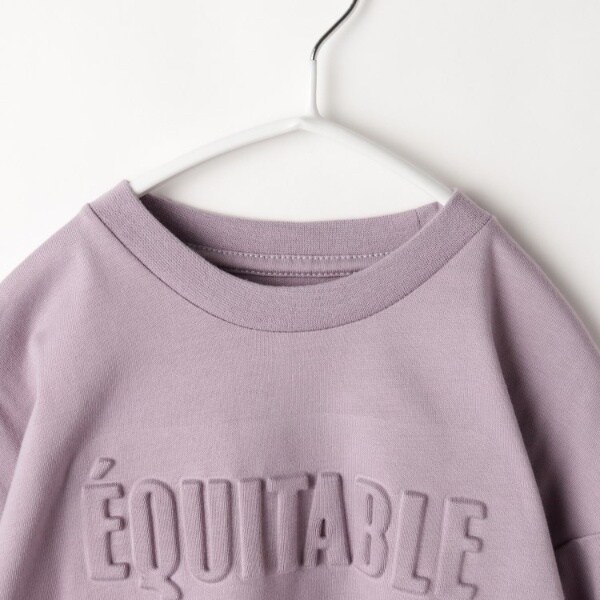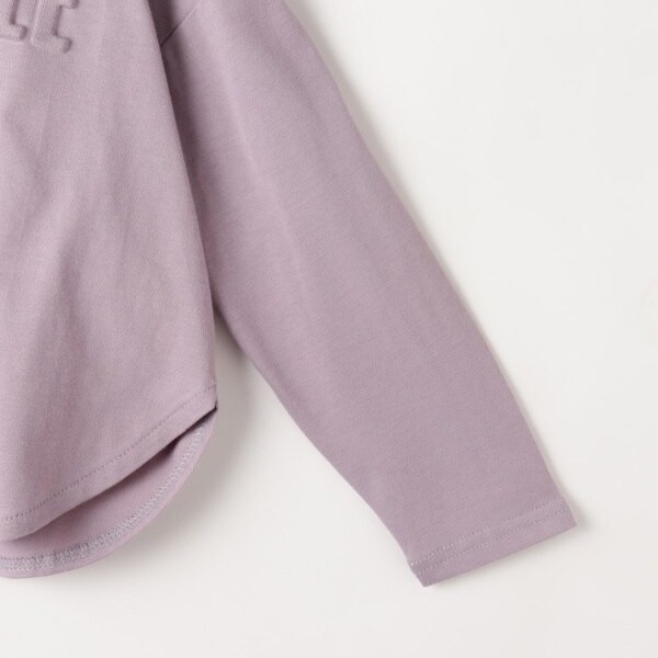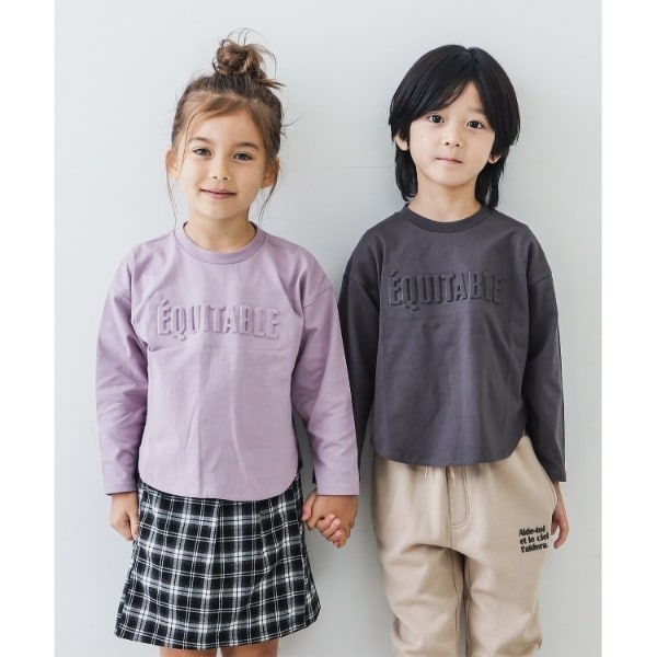 エンボスロゴが馴染んでいるので、ロングTシャツはのびーるパンツや、ガールズはキュロットスカート等合わせやすい着丈にしています。