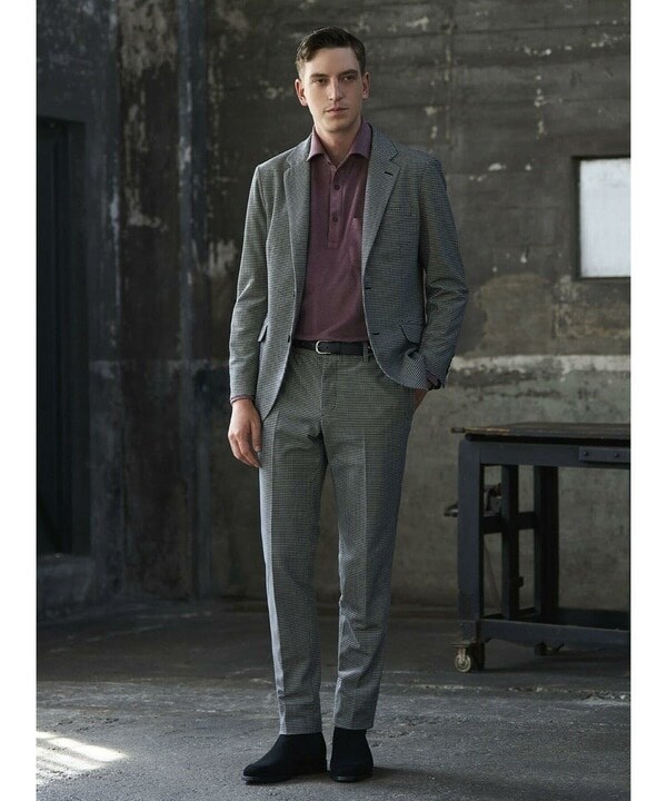 メンズビギ(MEN’S BIGI)/トリコットコーデュロイ千鳥格子プリントスラックスパンツ<セットアップ対応>