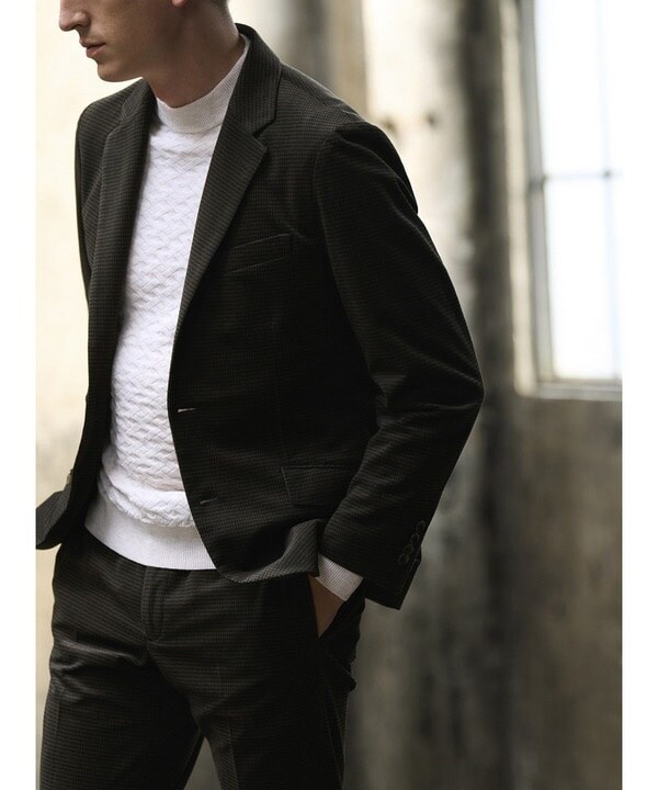 同色同素材のジャケット(M0133FJ 007)を合わせてセットアップでの着用がおすすめです。