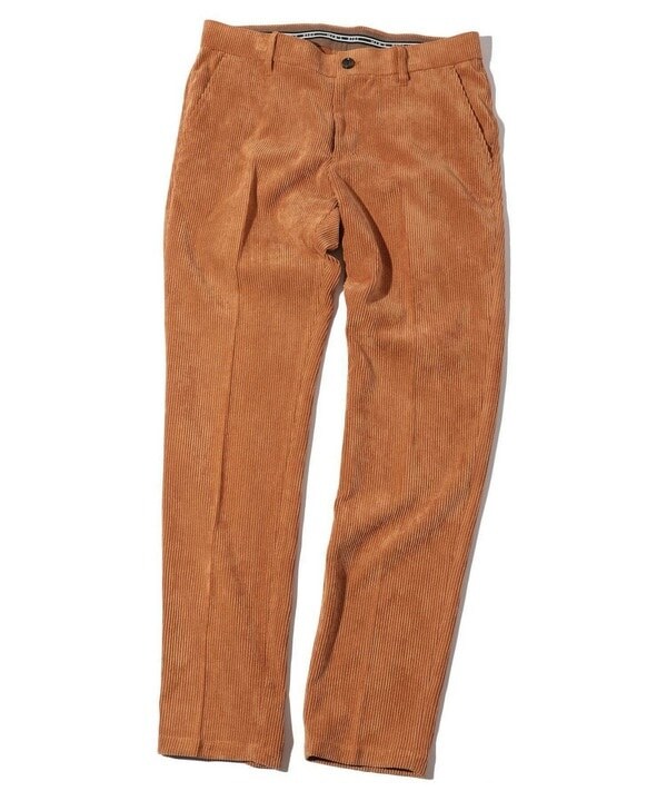 ポリエステル素材の太畝のコーデュロイ素材を使用したセットアップ企画パンツ。