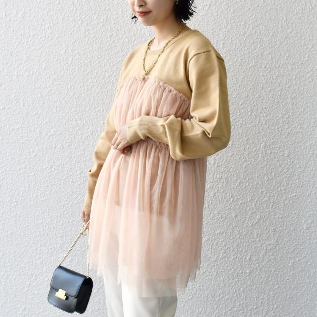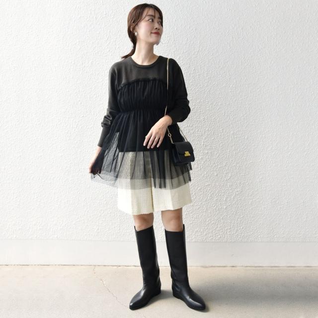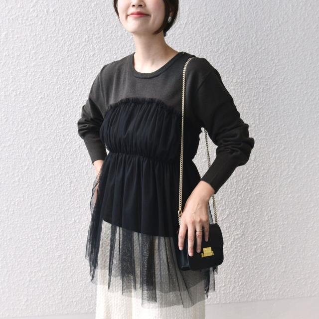 コメント:肌触りの良いニット素材で着心地が良いです。チュールがさり気なく腰回りをカバーしてくれるのも嬉しいポイント。