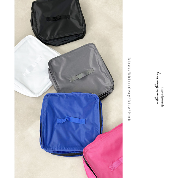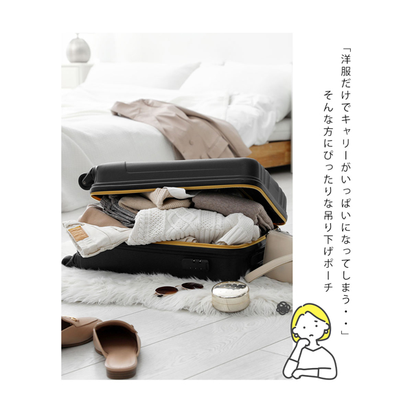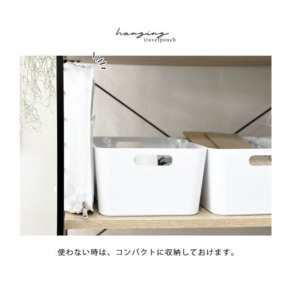 旅行先ではポーチを出してラックに引っ掛けるだけ。