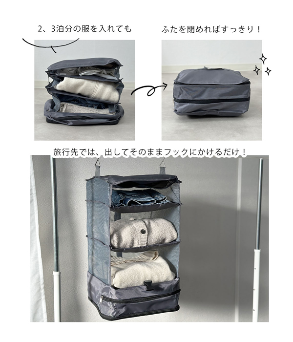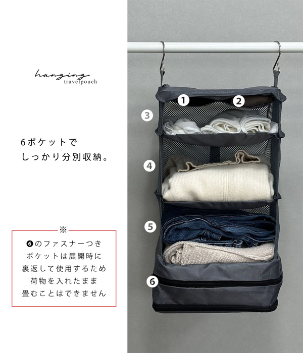 【今なら33%オフ!1,980円】吊り下げ 収納 収納ボックス 吊り下げ トラベルケース 衣類ラック インナーバッグ 旅行 出張 クローゼット 省スペース 衣装ケース 大容量 4段 6ポケット ファスナー 圧縮 便利グッズ 送料無料 生活雑貨 トラベルグッズ 服 片付け