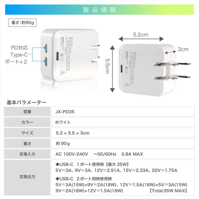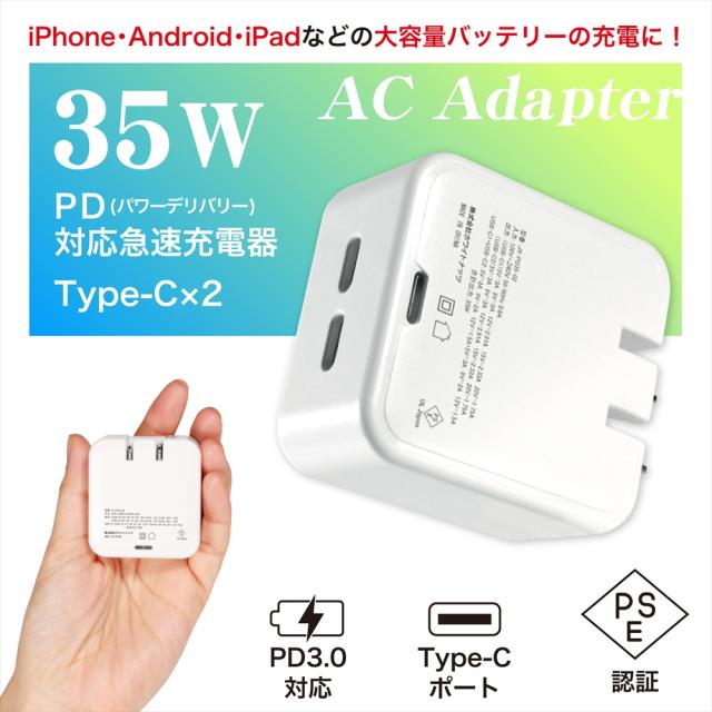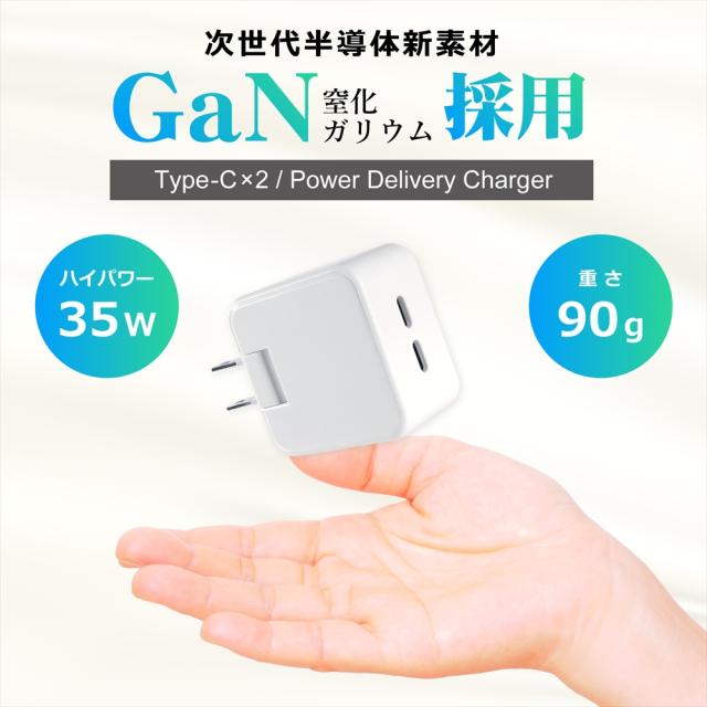 PD 充電器 35W 急速充電 iPhone15 充電器 Type-C 2ポート PD3.0 PC スマホ ACアダプター PD35W 充電器 GaN 同時充電 Macbook タイプC PC 軽量 コンパクト ノートパソコン typec 2ポート搭載 高速充電 折りたたみ式 Andriod タブレット Galaxy Xperia iPad Power Delivery