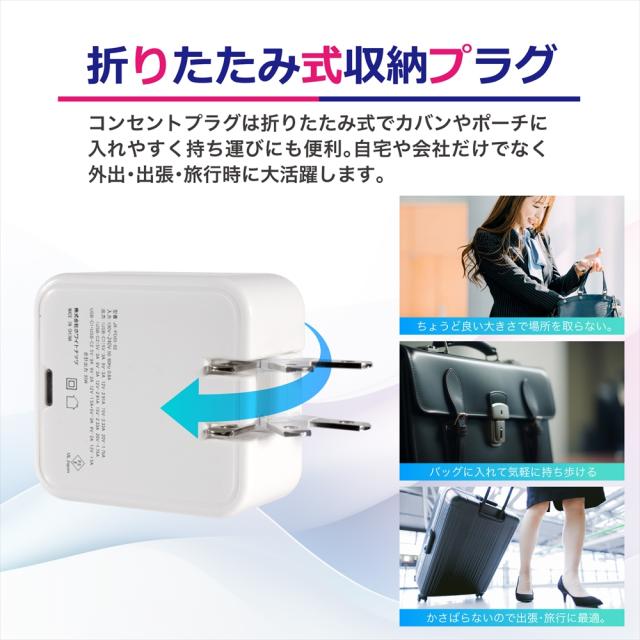 | 【GaN採用】PD急速充電器 ACアダプター【USB-C×2ポート】 次世代半導体新素材「GaN(窒化ガリウム)」採用により、従来品に比べて電力損失と発熱量が小さくなり小型化・高効率化を実現。 【最大出力35W】 単ポート使用時では最大35Wの出力。 MacBookAirなど、PD対応の様々なノートPCにも充電可能。 スマートフォンからノートPC、iPadなどのタブレットまで幅広い機器に対応します。 【2ポート搭載で2台同時急速充電可能】 2台同時利用時は各ポート最大出力18W+15Wで合計33Wに対応。 スマホを2台同時に急速充電可能。 iPhoneならPDに対応したiPhone8以降のモデルをおよそ30分で約50%まで急速充電することができます。 【PD急速充電対応】 USB C Power Delivery 3.0(パワーデリバリー3.0)急速充電対応。 【軽量・コンパクト】 重さわずか90gの軽量・コンパクト。 折りたたみ式プラグ搭載でコンセントまわりもスッキリし、持ち運びにも便利です。 【ご注意】 ※お使いの端末すべてに最大出力での充電を保証しておりません。 ※急速充電を利用するには、ご使用の機器とケーブルがPD規格に対応していることが必要です。 >>ケーブル不要な方にはACアダプタのみでも販売中! こちらから<< |