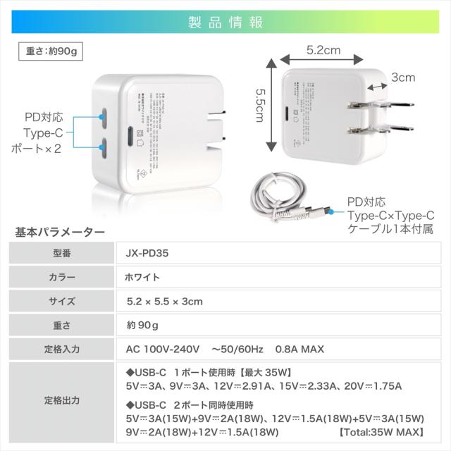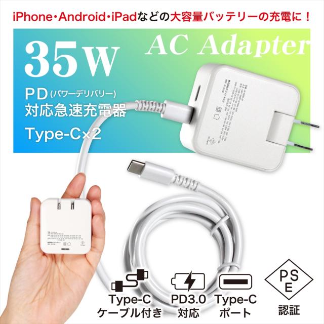 PD 充電器 35W 急速充電 iPhone15 充電器 Type-C 2ポート ケーブル付き 1.2m PD3.0 PC スマホ ACアダプター PD35W GaN 同時充電 Macbook タイプC PC 軽量 コンパクト ノートパソコン typec 高速充電 折りたたみ式 Andriod タブレット Galaxy Xperia iPad Power Delivery