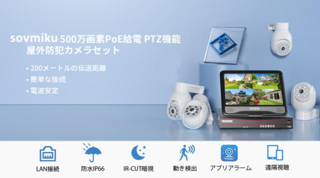 防犯カメラ 屋外 セット 家庭用 有線 poe給電 監視カメラ PTZカメラ 4台セット 10インチ モニター 500万画像 防犯灯付き 動体検知 AI追跡 常時録画 遠隔監視