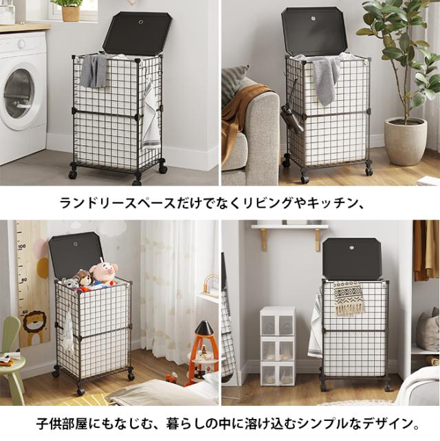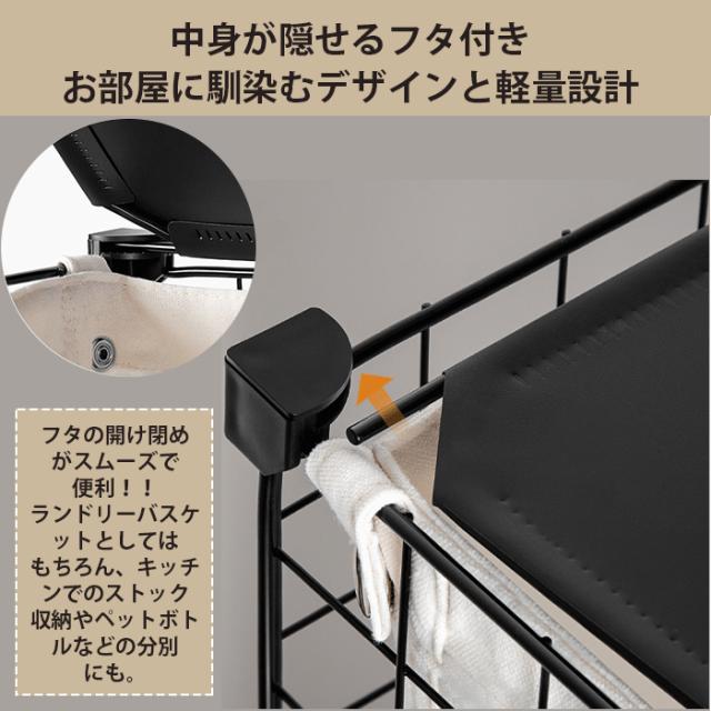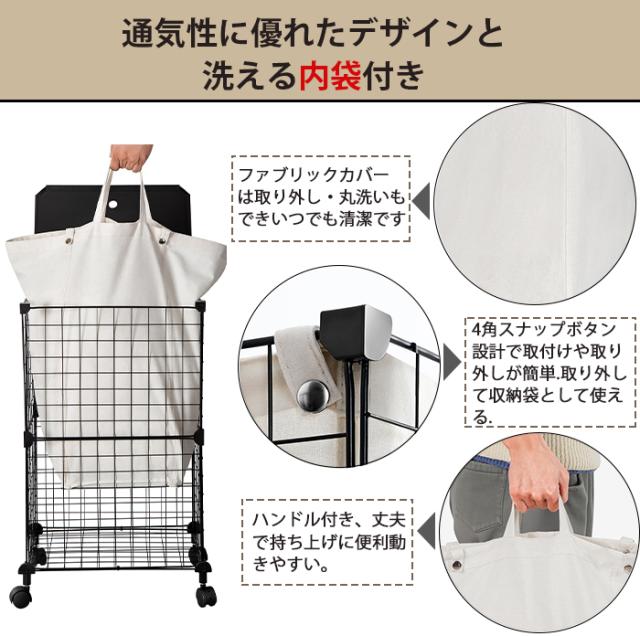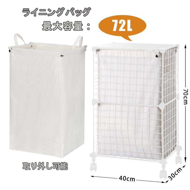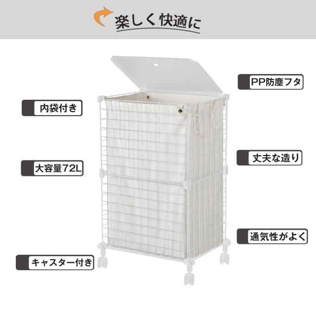 【今だけP5実施中】72L ランドリーバスケット ワイヤー キャスター付き 蓋付き 洗濯物入れ 洗濯カゴ 大容量 脱衣かご 内袋付き