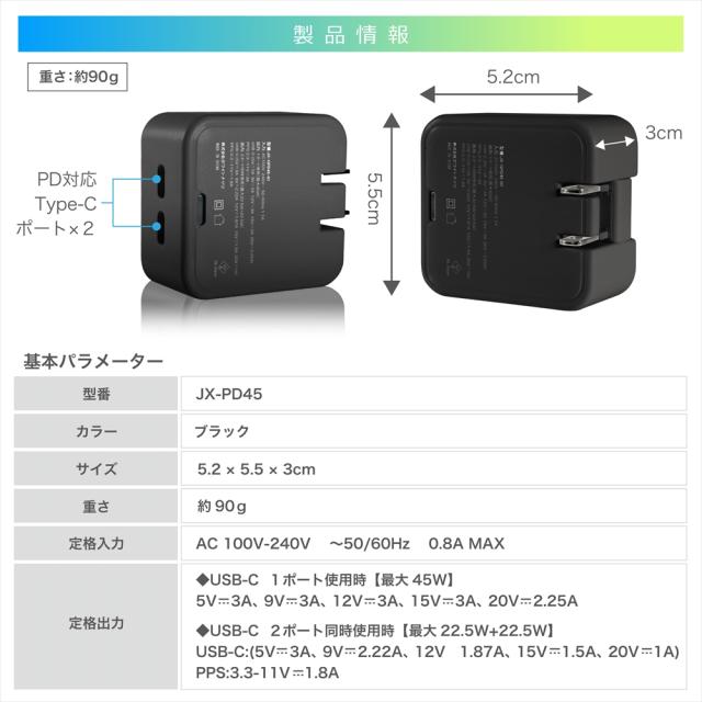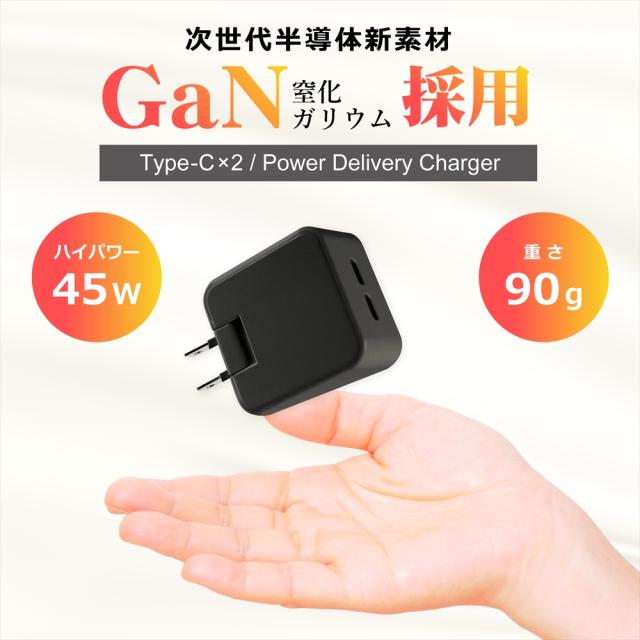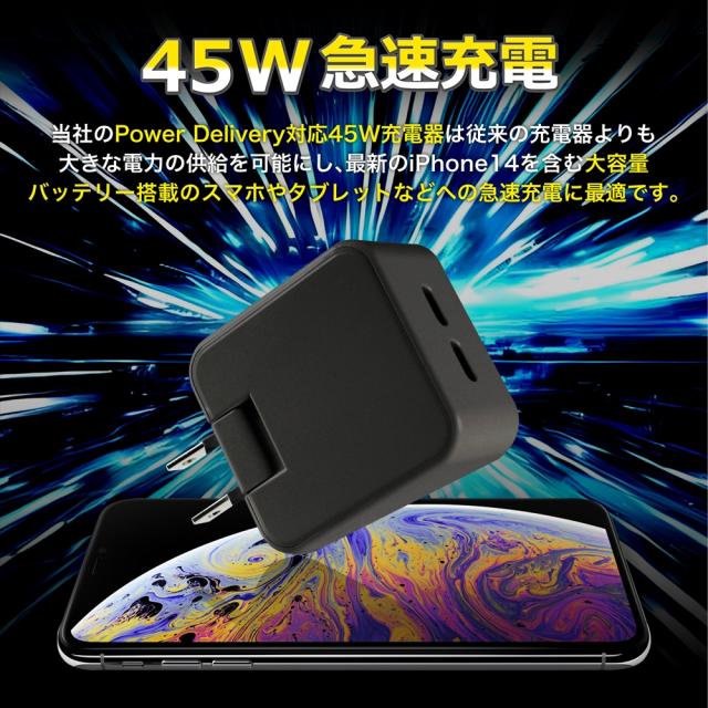 PD 充電器 45W 急速充電 iPhone15 充電器 Type-C 2ポート PD3.0 PC スマホ ACアダプター Galaxy S23 Ultra 充電器 GaN 同時充電 Macbook タイプC PC 軽量 コンパクト ノートパソコン typec 高速充電 折りたたみ式 Andriod タブレット Galaxy Xperia iPad Power Delivery