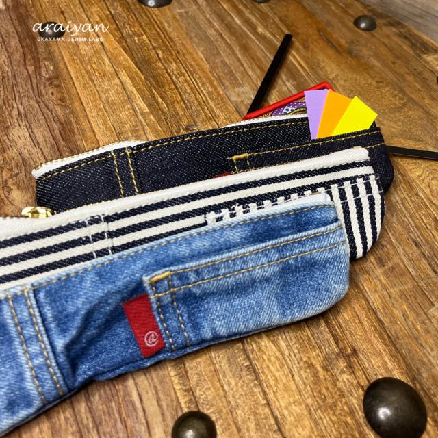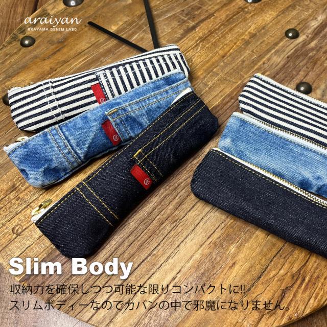 【araiyan】 アライヤン スリムペンケース デニムペンケース 筆箱 ふでばこ ペンケース 筆入れ 小物ポーチ 化粧ポーチ 大人 新入学 新学期 中学 高校 大学 会社 オフィス 普段使い 文房具 カジュアル 岡山デニム ラボ 日本製 デニム雑貨 コットン100% AS17001 配送区分N