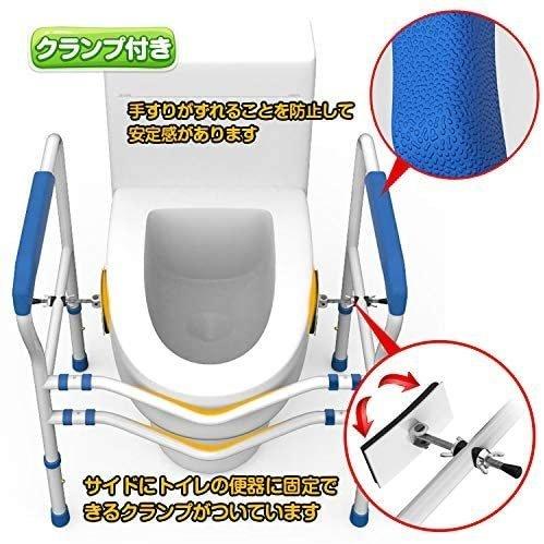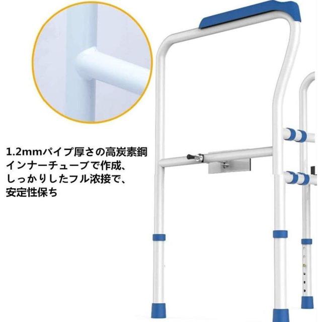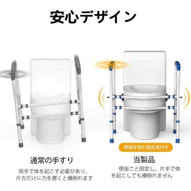 【細部がアップグレード】湾曲したロッドのデザインが便器の形に沿うため、足に邪魔になりません。片側に体重をかけた場合でもずれることはないので、転倒防止に役立ちます。ハンドパッドは滑り止め加工、耐摩擦性と耐久性に優れています。座る時に邪魔になることも無いので、毎日ストレスフリーでご利用頂けます。
