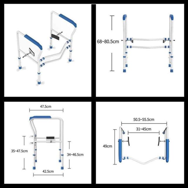 【商品仕様】材質:高強度炭素鋼 耐荷重:120kg 重量:7kg【ほとんどのトイレに対応可能】従来のトイレ用手すりとは一味違い、両側にマルチアングル調節可能なクランプを搭載。U字型でも長方形でも、ほとんどのタイプの洋式便器でご利用できます。
