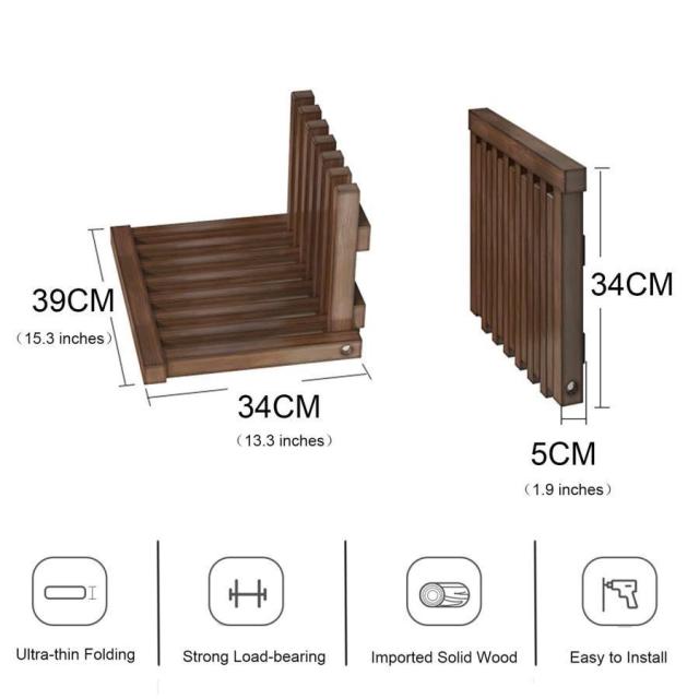 ★素材: 壁掛け用のチェアとスツールには、硬度が高く耐久性に優れたラバーウッド無垢材を使用しています。表面は滑らかで、お手入れも簡単です。