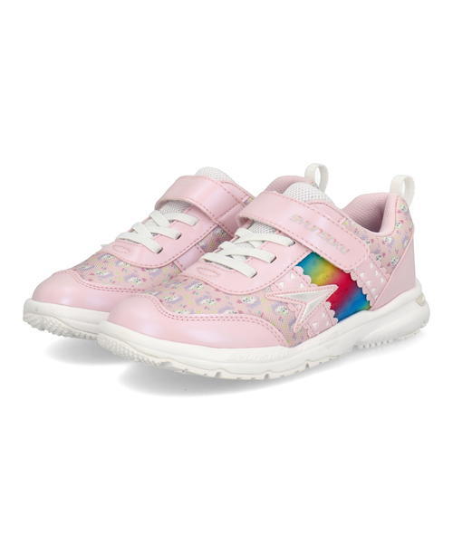 瞬足 シュンソク タテノチカラ1 【軽量】キッズスニーカー LC-766 ピンク(白底)