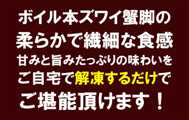 - この値段で量が多いのでクオリティーが心配でしたが、大変素晴らしく美味しいズワイ蟹でした。 ぜひまたリピートしたいです。