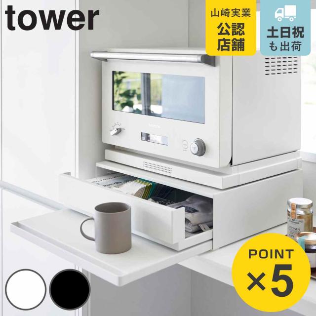山崎実業 tower ツーウェイ キッチン家電下引き出し&スライドテーブル タワー ( 4903208020077 タワーシリーズ スライドテーブル キッチンスライドテーブル 家電下テーブル 家電下トレー ホワイト ブラック )