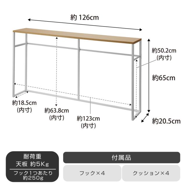 | サイズ | 約 幅126×奥行20.5×高さ65(cm) 天板下:約 幅123×奥行18.5×高さ63.8cm |