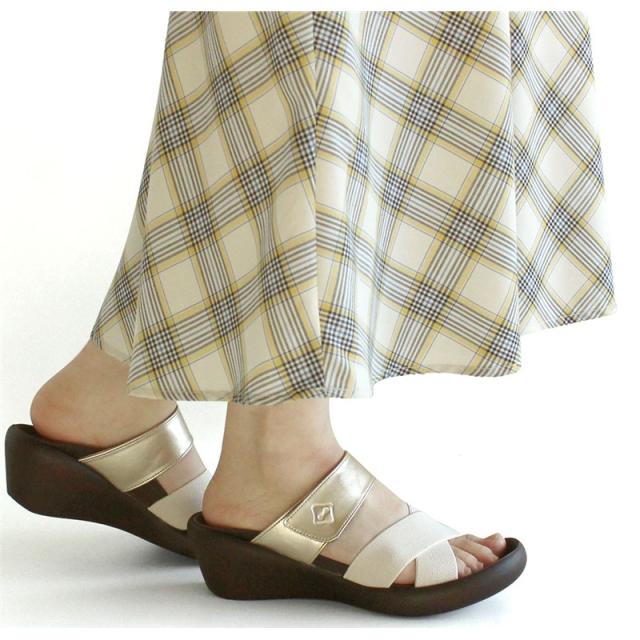 クロスベルト部分はゴム素材なので、甲高や足幅が広い方でも安心して履ける万能アイテムですよ。