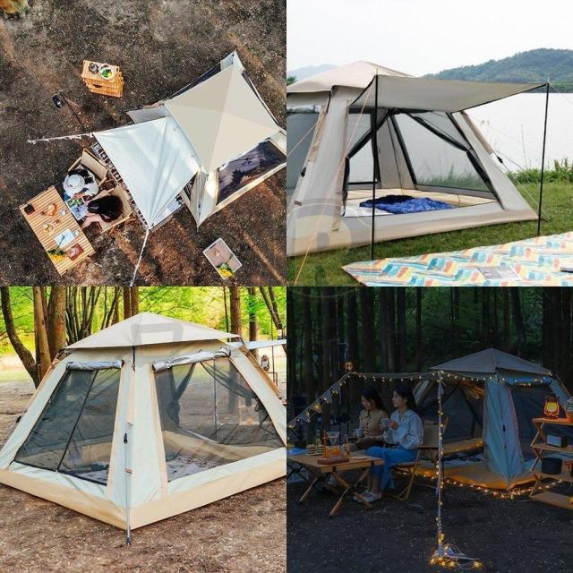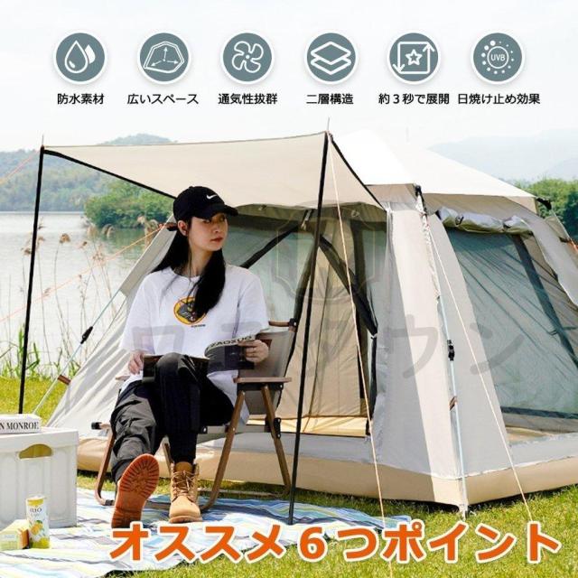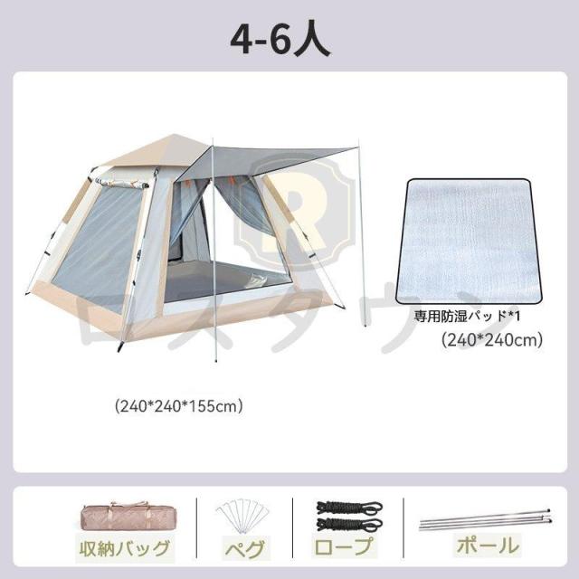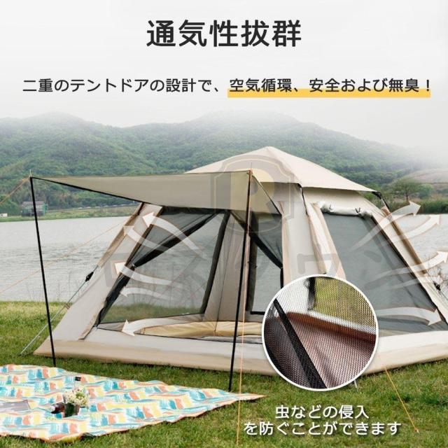 4-6人用 テント ワンタッチテント 大型 ポップアップテント 軽量 両面メッシュ 簡易 紫外線防止 防災 防水 蚊虫 収納袋 ビッグテント アウトドア