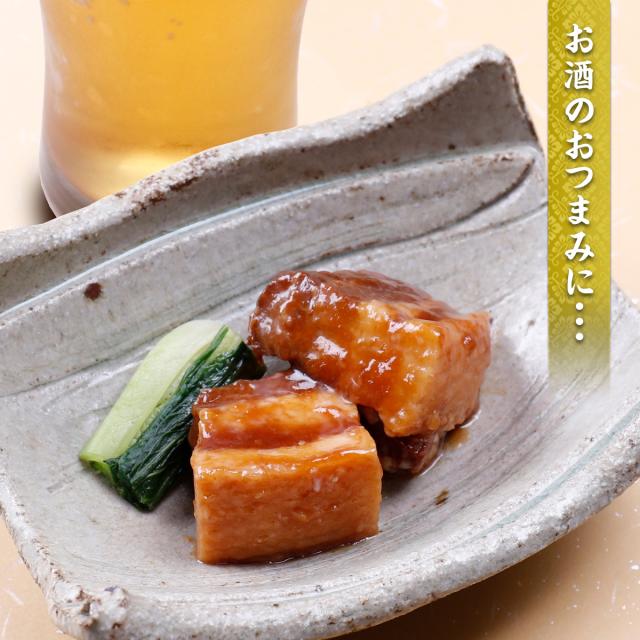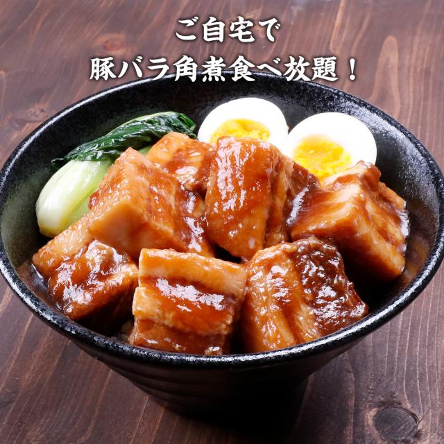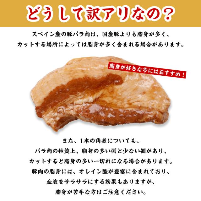 商品のポイント:スペイン産の豚バラ肉を九州風の甘めのタレでしっかりと味付け!タレがよく染み込んだトロトロの角煮が6本も入ったお得なセットです。