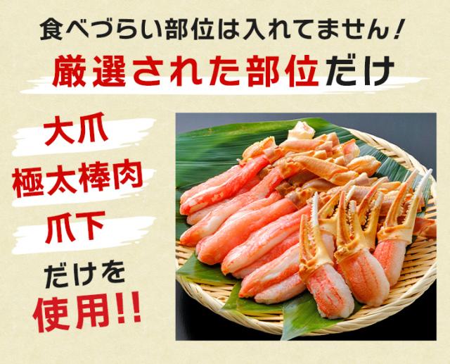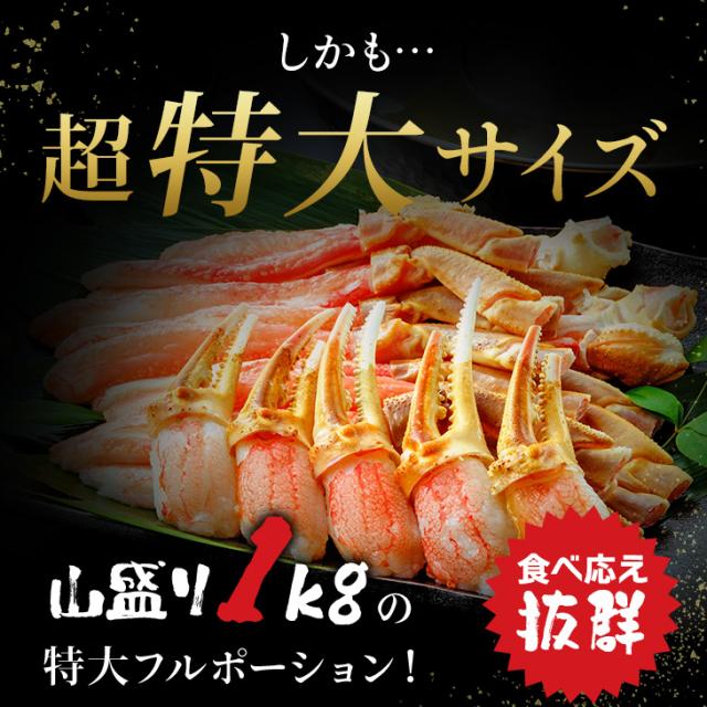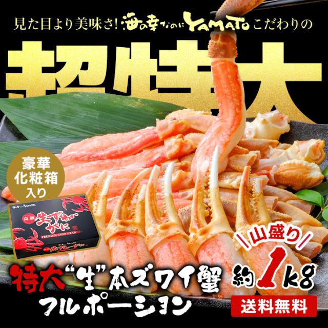 大爪入り 特大“生”本ズワイ蟹フルポーション 1kg お刺身OK フルポーション 1kg お刺身ok ずわいがに ズワイガニ お年賀 お歳暮 ギフト グルメ 贈答 海鮮 父の日 母の日 お中元 お歳暮 ギフト
