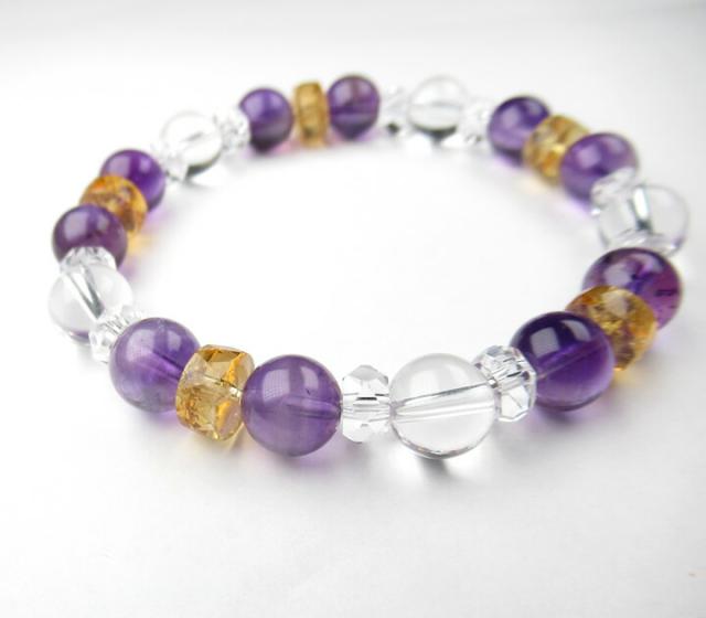 ボタンカットシトリン アメジスト 水晶ブレスレット 金運 成功 財運 大天使ジョフィエルの黄金の叡智の翼 B1ci014