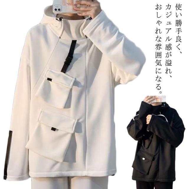 パーカー メンズ プルオーバー 長袖 春服 秋服 トレーナー 大きいサイズ フード付き トップス スウェット カジュアル ゆったり ポケット おしゃれ ストリート ファッション