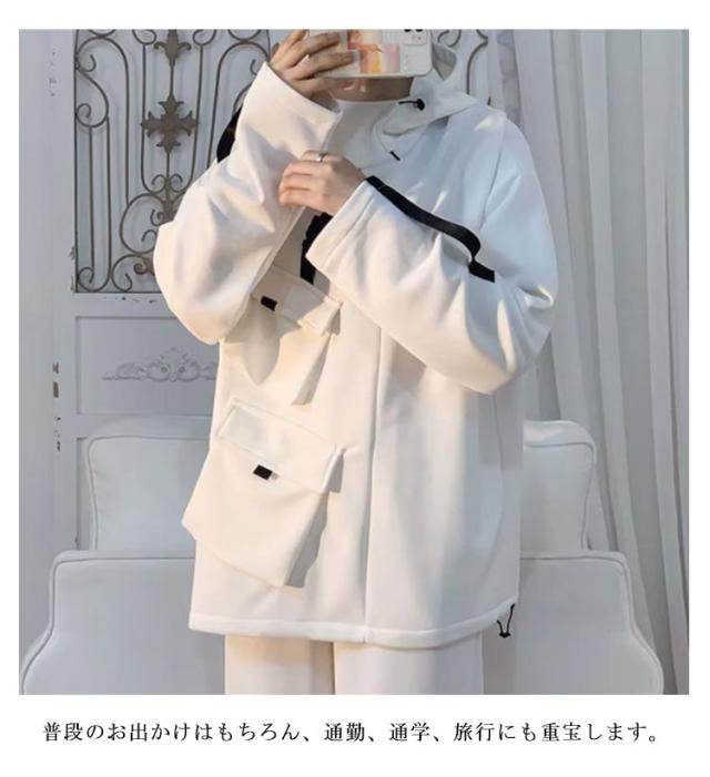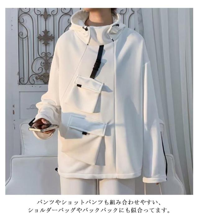 | 使い勝手良く、カジュアル感が溢れ、おしゃれな雰囲気になる。 普段のお出かけはもちろん、通勤、通学、旅行にも重宝します。 パンツやショットパンツも組み合わせやすい、ショルダーバッグやバックパックにも似合ってます。 衣服の中間に2枚大きいポケットが付いており、スマホや財布などの小物を入れられて便利です。 | |