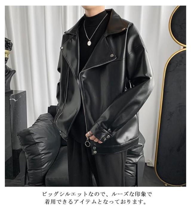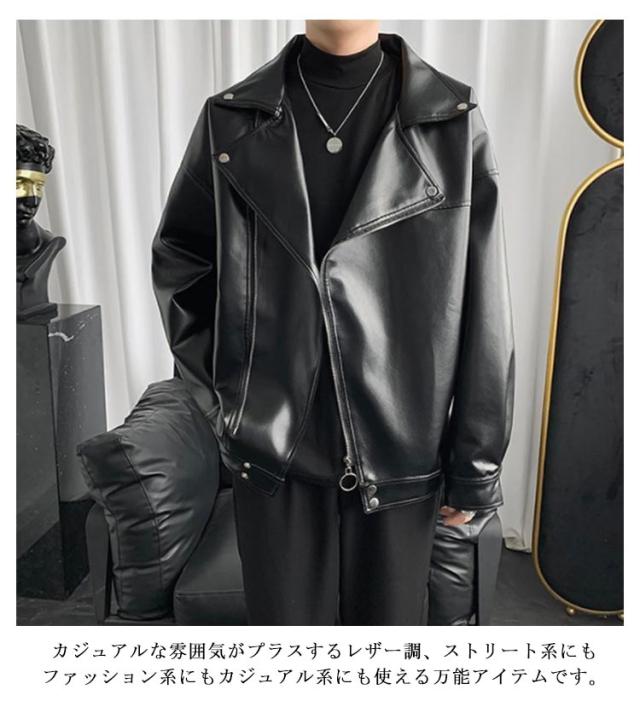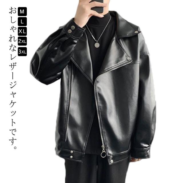 ライダースジャケット メンズ 大きいサイズ レザージャケット PU 革ジャン ジャケット アウター ビッグシルエット 斜めジップ 皮ジャン ストリート系 カジュアル 春秋 M L XL 2XL 3XL