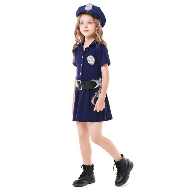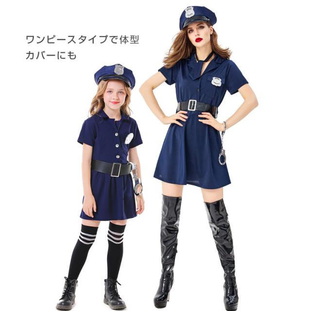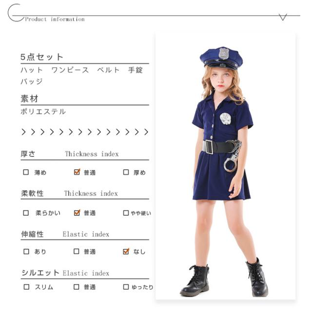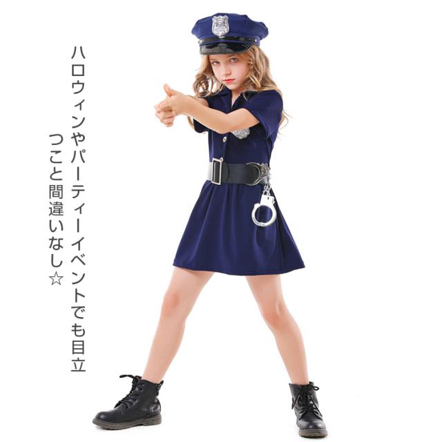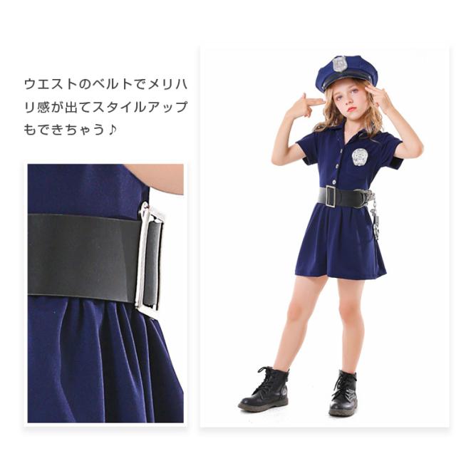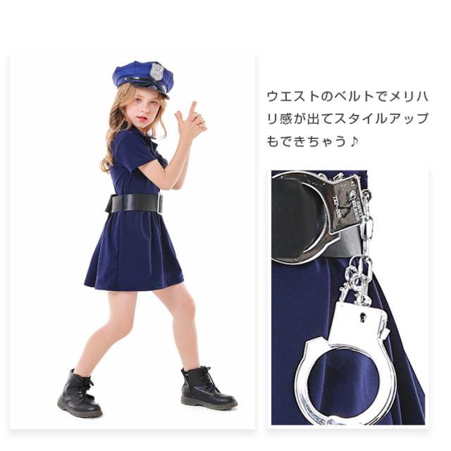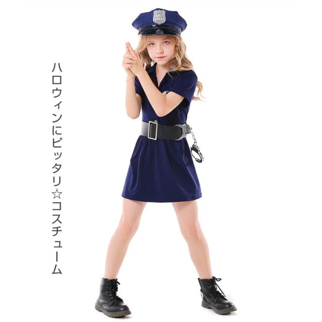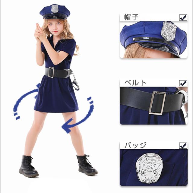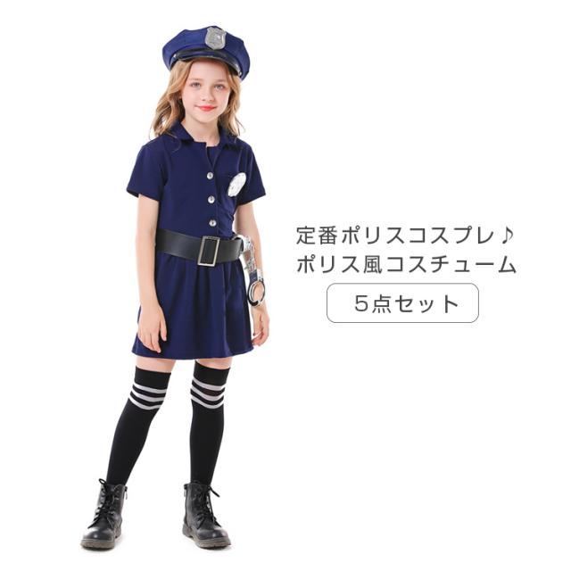定番ポリスコスプレ ハロウィン コスプレ キッズ 子供用 ポリス風コスチューム 5点セット ハット ワンピース ベルト 子供 仮装 可愛く変身 衣装 コスチューム 仮装衣装 通販