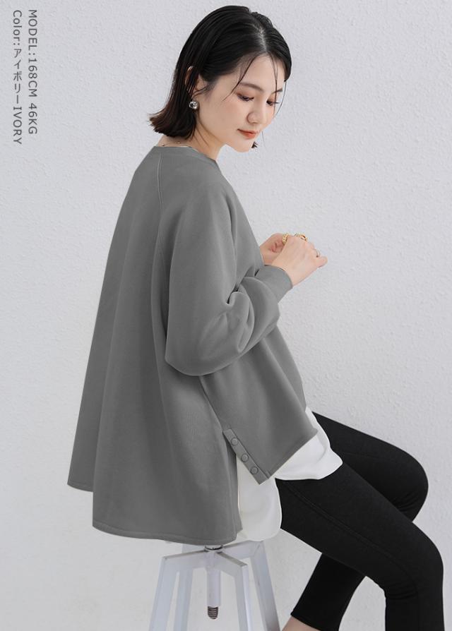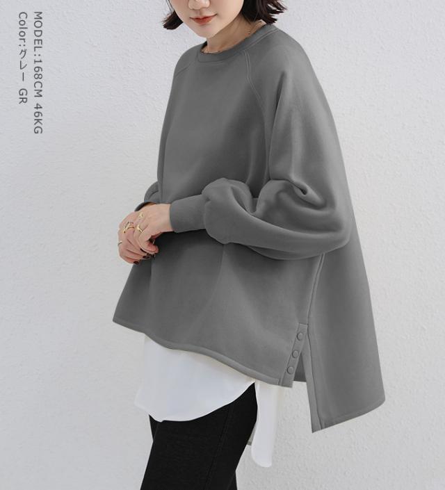 980円OFF、1000円、冬新作 スリットトップス 微起毛 裏起毛トップス 裏起毛スウェット 裏起毛スウェット レディース サイドスリット 前後差 トレーナー クルー 防寒 クルーネック 長袖 オーバーサイズ 無地 ゆったり 体型カバー 30代 40代 50代