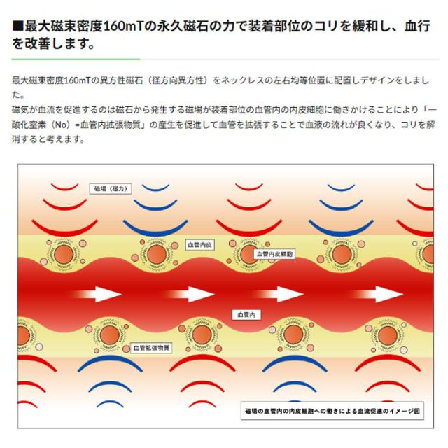 最大磁束密度160mTの磁気の力で装着部位のコリと血行を改善。