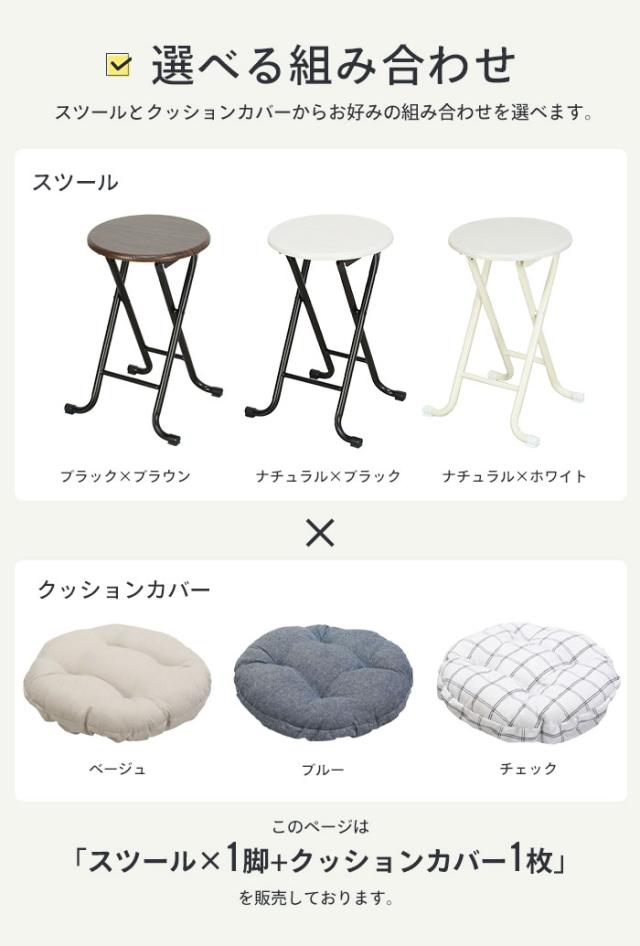 \折りたたみスツール1脚+丸椅子用クッションカバー1枚のセット/