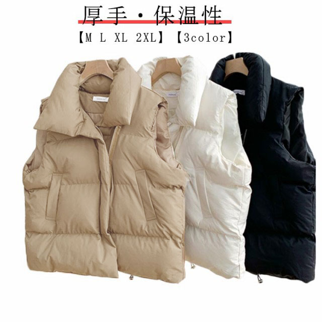 | 【M L XL 2XL】【3color】【厚手・保温性】 厚手となっていて、ふんわりとしているので、保温性に優れている中綿ベスト。 インナーとのコーデも楽しみ、通勤通学・デートや旅行など、デイリー着こなせる主役アイテム。 立ち襟のデザインで首元まで暖めて、さりげなく体型カバーのシルエット、全方位どこから見てもスタイル美人。 | |