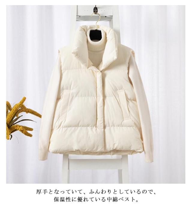 中綿ベスト レディース ジレ 立ち襟 ダウン風 アウター 秋冬 ジャケット ノースリーブ コート スタンドカラー ダウンベスト 綿入れ 厚手 冬 前開き 防寒 あったか 秋 冬 大きいサイズ おしゃれ きれいめ ゆったり カジュアル 暖かい シンプル 韓国ファッション
