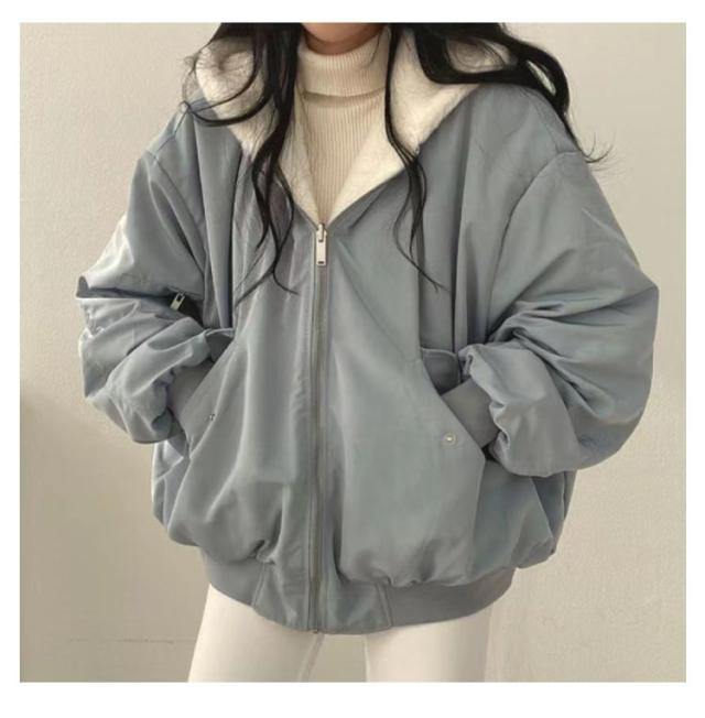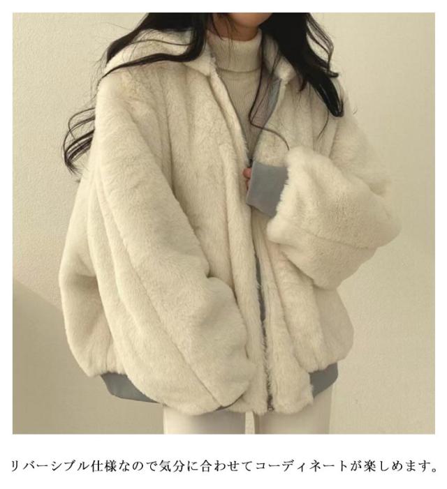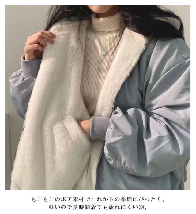 リバーシブルボアジャケット ボアコート パーカー ジャケット ブルゾン ミリタリージャケット フード もこもこ ふわふわ フリース ファー ショート丈 アウター ジャンバー あったか 防寒 ゆったり ライトアウター