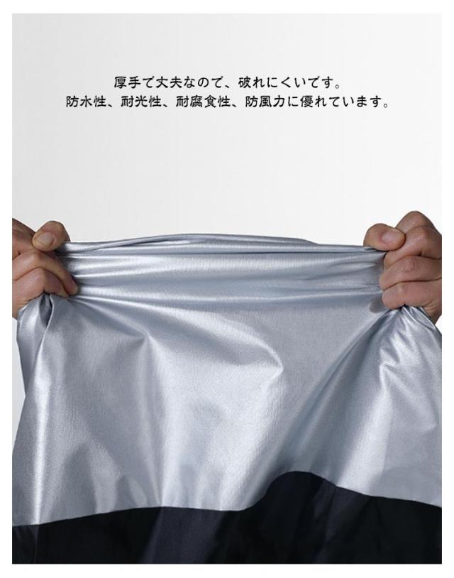 | 【バイクカバー】【S M L XL XXL】【防水・UVカット・耐熱】 生地にシルバーコーティングを施しており、紫外線をカットできるので紫外線による劣化を防ぐことができます。 水滴をしっかりガード!超撥水!雨だけでなく、雪や埃汚れやサビからも自転車を守ります。 厚手で丈夫なので、破れにくいです。防水性、耐光性、耐腐食性、防風力に優れています。 毎回調整しなくてOK!かぶせるだけのゴム絞り採用、素早くカバーをかけることができます。 風が強い日にも安心な風飛び防止ベルトがついています! 前輪はロック用の盗難防止穴を採用:前後輪も風飛び防止のワンタッチバックル付き。 | |