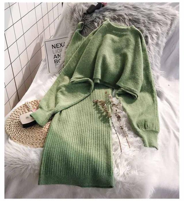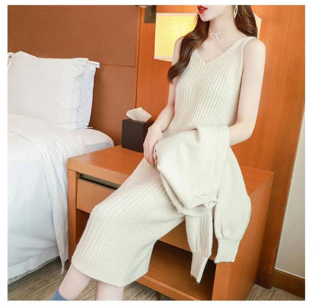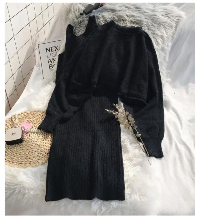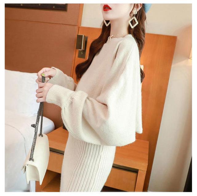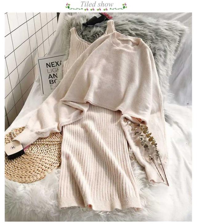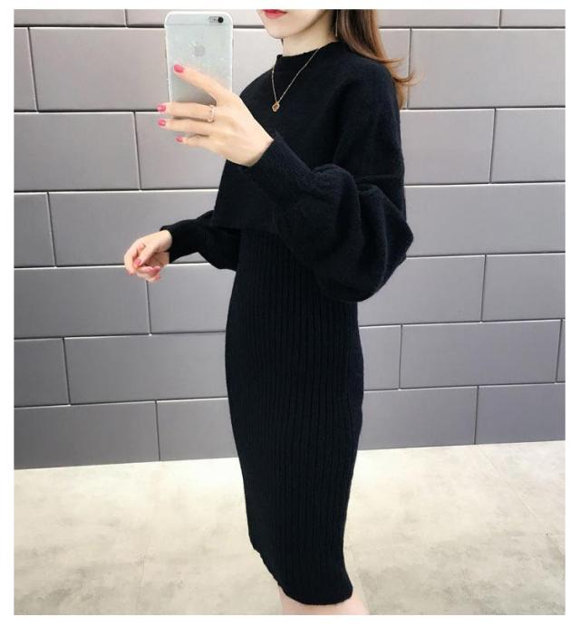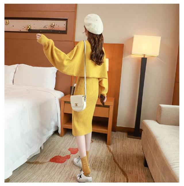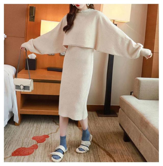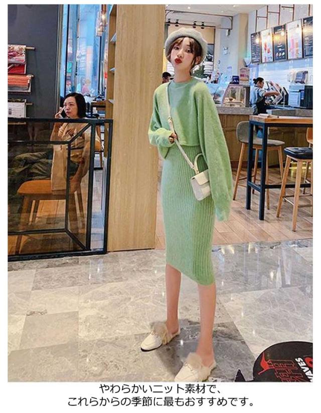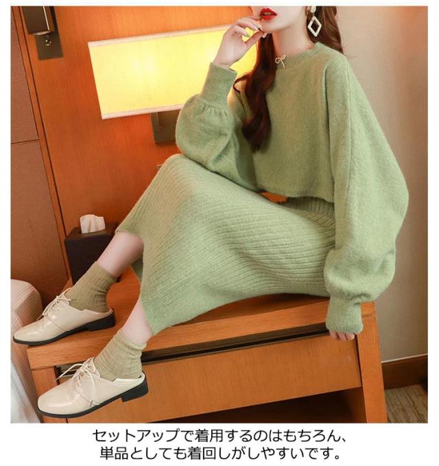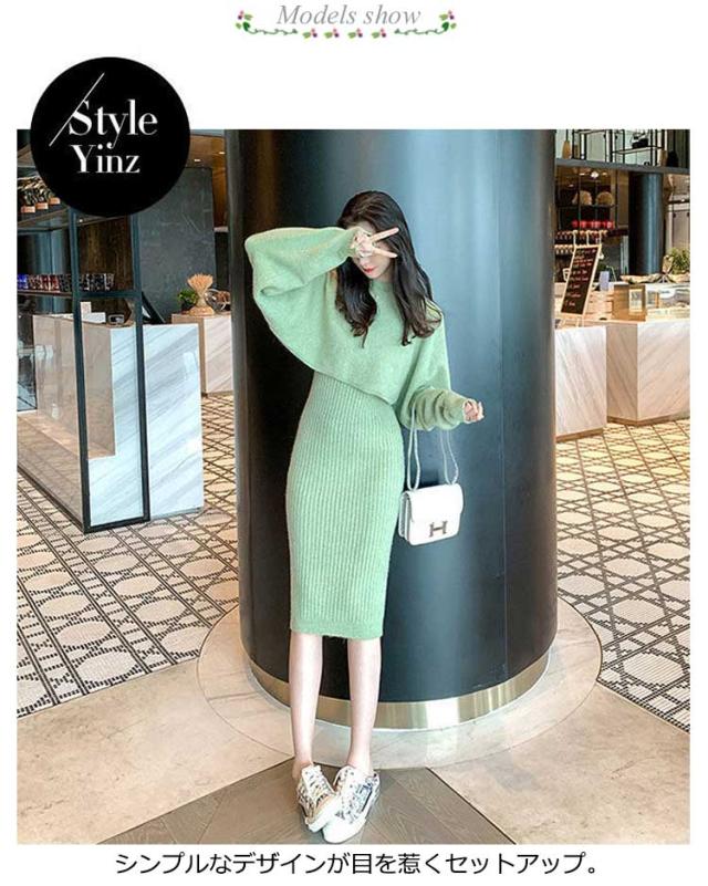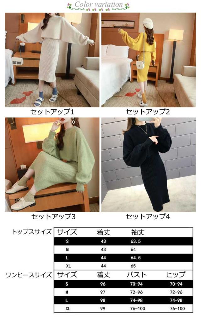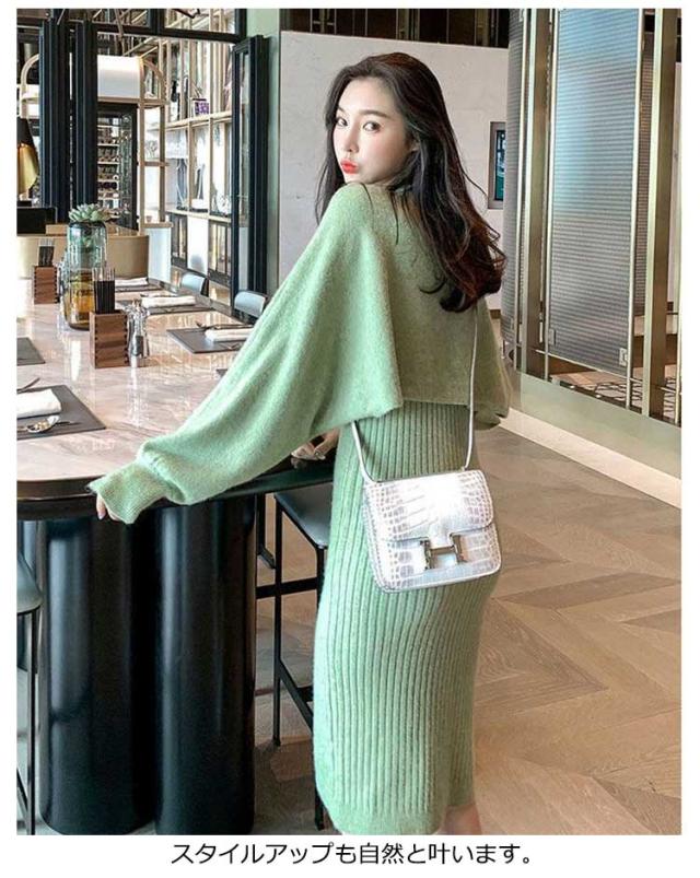 ドルマンスリーブニット ニットセットアップ レディース ニットワンピース ノースリーブ ワンピース ニットセーター 2点セット ロングワンピース きれいめ 上品 秋冬 エレガント 体型カバー 着痩せ 二次会 同窓会 お呼ばれ カジュアル お出かけ