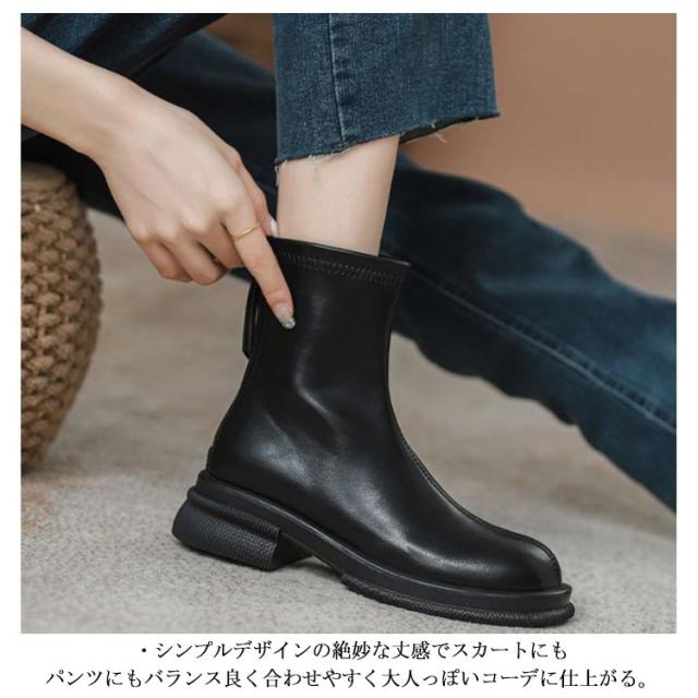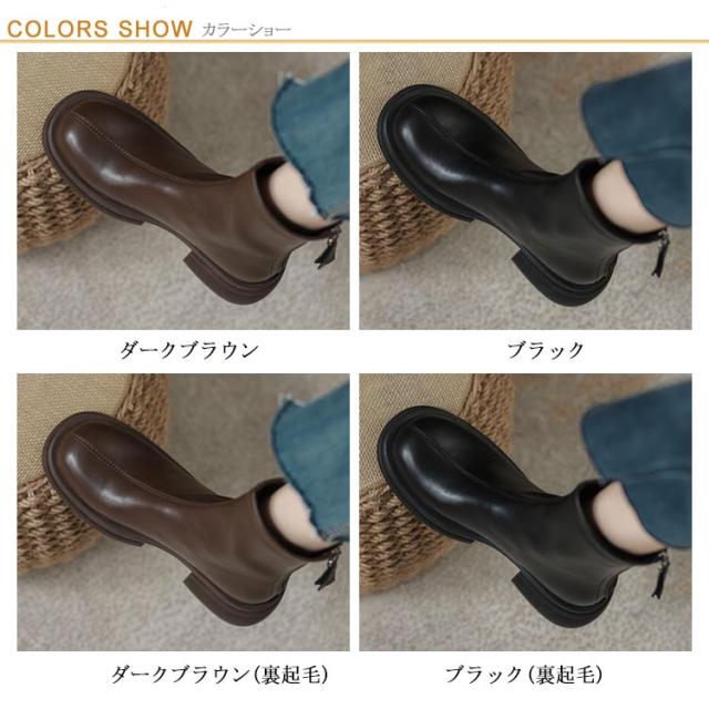 シューズ フラット ブーツ レディース スクエアブーツ フラットブーツ ショートブーツ ローヒール 裏起毛 靴 ファスナー 4.5cmヒール 太ヒール 歩きやすい 韓国 ブラック 黒 秋冬 カジュアル お洒落 疲れにくい シンプル