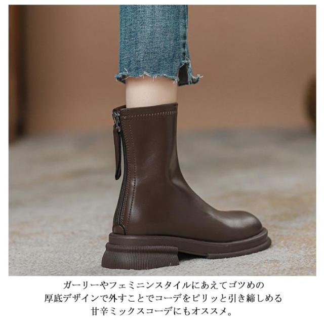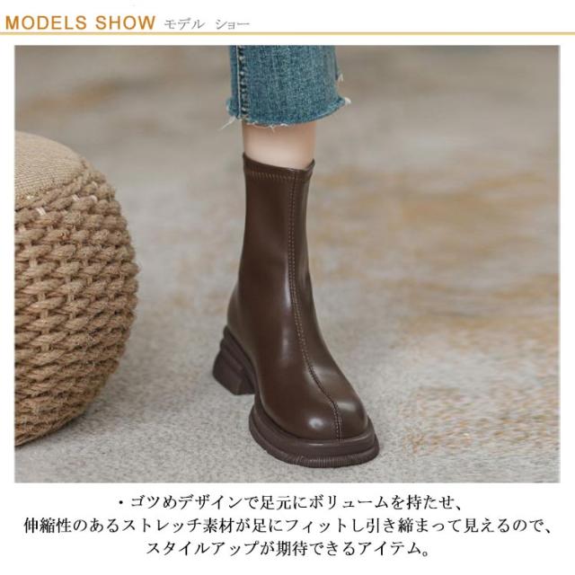 | 厚底ストレッチショートブーツ ・ゴツめデザインで足元にボリュームを持たせ、伸縮性のあるストレッチ素材が足にフィットし引き締まって見えるので、スタイルアップが期待できるアイテム。 ・柔らかく足にフィットするストレッチ素材で、スッキリとキレイなシルエット! ・スキニーパンツで脚のラインをキレイに見せ、足元にボリューム感を出す定番のスタイルはもちろん、 ガーリーやフェミニンスタイルにあえてゴツめの厚底デザインで外すことでコーデをピリッと引き締しめる甘辛ミックスコーデにもオススメ。 韓国コーデにもマッチ◎ ・シンプルデザインの絶妙な丈感でスカートにもパンツにもバランス良く合わせやすく大人っぽいコーデに仕上がる。 | |