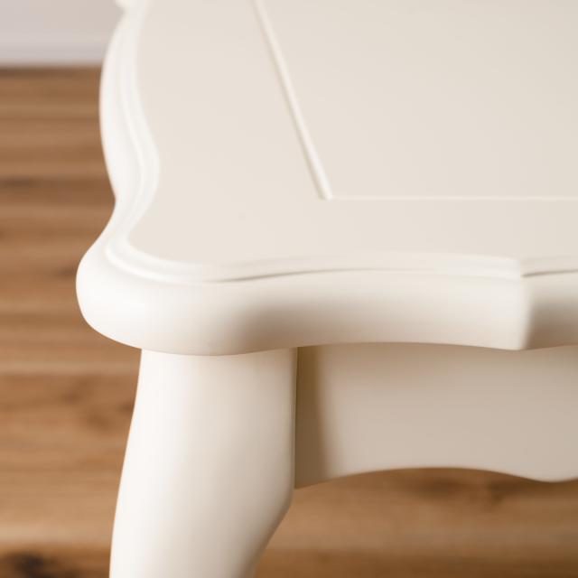 4面使えるコンパクトサイズで、対面使用も可能です。また、ホワイトカラーと天板のデザインは布団をかけてもクラシカルでガーリーな雰囲気を演出します。
