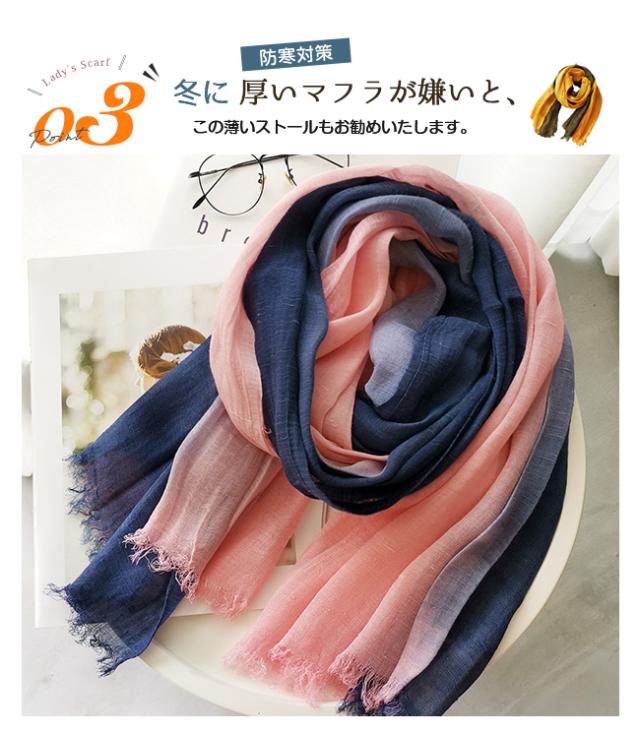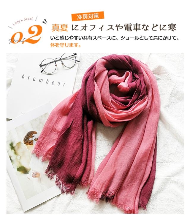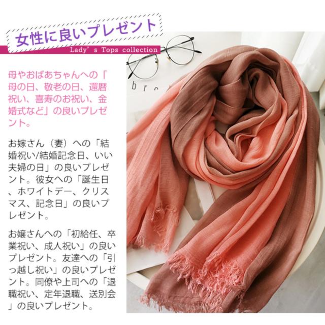 人気 大判 ストール レディース マフラー スカーフ 綿 柔らかい グラデーション 薄手 UVカット 冷房対策 春 夏 秋 冬 結婚式 誕生日 敬老の日 母の日 プレゼント