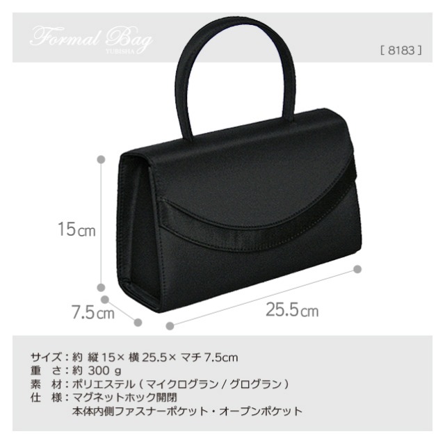 | 【8183】 フォーマルバッグ 3点セット 手提げ・ふくさ付き フォーマルバッグ (優美社) 素 材|ポリエステル (マイクログラン/グログラン) サイズ |約 H15×W25.5×D7.5 cm (サブバッグ:約 H28.5×W26cm) (袱紗:約 H12.5×W21cm) 仕 様|マグネットホック開閉 本体内側ファスナーポケット オープンポケット イメージ|おしゃれ かっこいい エレガント 人気商品 おすすめ お洒落 きれい 売れ筋 使いやすい シンプル コンパクト 和装 洋装 正装 手提げバッグ フォーマル 人気 黒 フォーマル セット ブラック 手提げ袋 ふくさ付き 袱紗 |