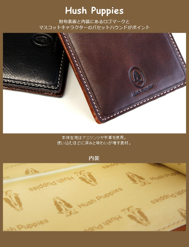 二つ折り財布 Hush Puppies ハッシュパピー二つ折り財布 マゴシリーズ キップ調アニリンツヤ牛革 [hp0345] 札入れ 財布 二つ折財布 革 本革 人気 メンズ レディース ブランド 男性 女性 誕生日 父の日 ギフト プレゼント