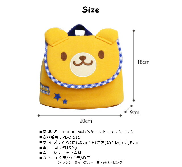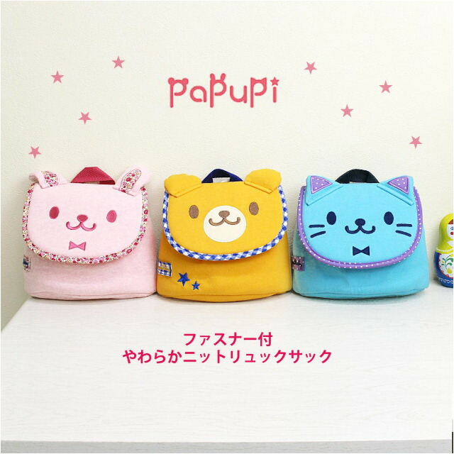 PAPUPI(パプピ) リュックサック [pdc-616] キッズ かぶせリュック やわらかニットシリーズ リュック 保育園 幼稚園 こども園 通園 遠足 お出かけ ミニ 小さい 小さめ 小型 軽い 動物 アニマル かわいい 入園 入学