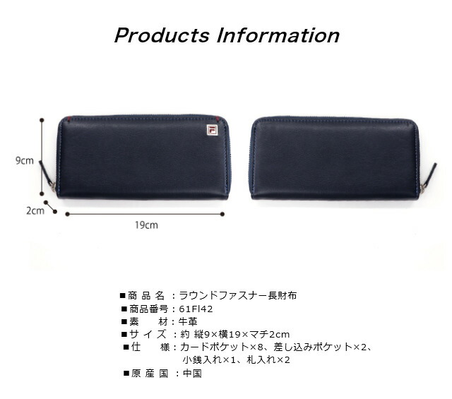 長財布 FILA(フィラ) 牛革 ラウンドファスナー 長財布 [61fl42] 財布 長財布 革 本革 メンズ レディース ブランド ファスナー財布 男性 女性 誕生日 父の日 ギフト プレゼント