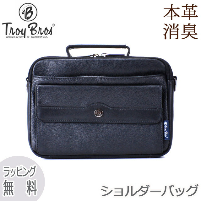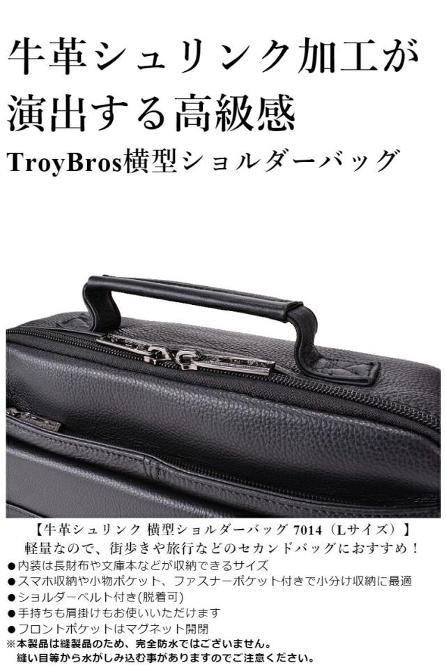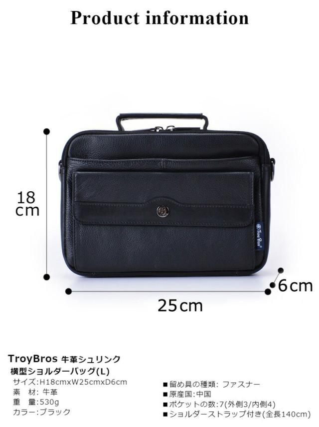 ショルダーバッグ メンズ 革 斜め掛け 本革 (L) [7014] Troy Bros トロイブロス 横型 軽量 牛革 本革 黒 ヨコ型 かっこいい 旅行 サブバッグ レザー シンプル メンズバッグ 通勤 サブバッグ お手頃価格 ブラック [送料無料]