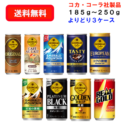 コカ・コーラ社商品 コーヒー&リアルゴールド 185g〜250g ×30本×(よりどり3ケース) 選り取り/コーヒー/珈琲/炭酸飲料/