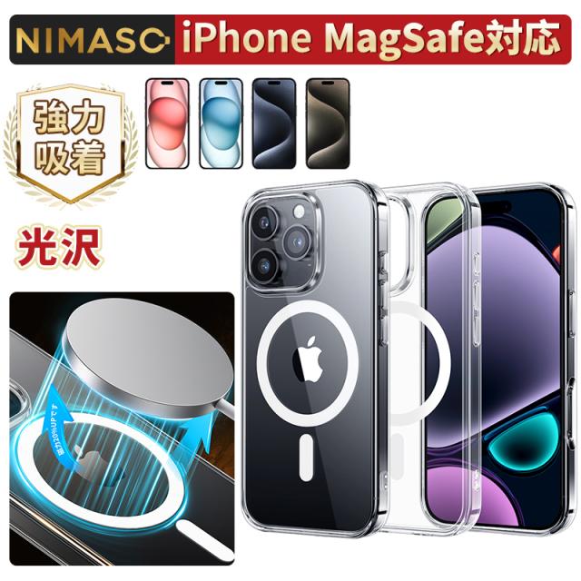 NIMASO ケース MagSafe対応 iPhone 17/16 用 クリア 保護ケース 黄変防止 マグネット搭載 マグセーフ対応 耐衝撃 PC背面 傷つけ防止 薄型 ワイヤレス充電対応 アイフォン 17/16(氷星シリーズ)