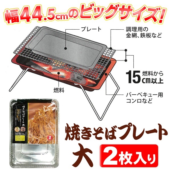 アルミ製 焼きそばプレート 2枚入 大サイズ 片付けラクラク 使い捨て アウトドア用品 BBQ キャンプ 鉄板代わり 便利グッズ ついで買い特集【 フライパン バーベキュー 調理器具 グリルプレート 鉄板焼き 焼き肉 焼肉 まとめ買い 】 /100S◇ 焼きそばプレート大